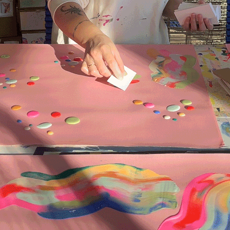 We apply layers of paint to extra thick sheets of paper in a variety of colors.
