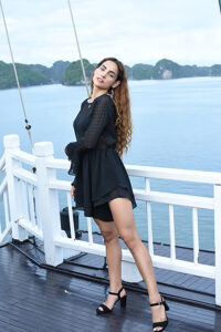 • Sheer noire love, presented in a mini-length romper. Unlined chiffon dobby fabric, flowy bottom with elasticated seam. Full circular sleeve with attached ruffle at the wrist. Round neckline and a deep keyhole at the back.