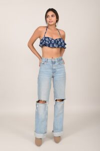 Our I Heart Bikini Top is designed to elevate your beach wardrobe with a touch of romance and style. Featuring a heart-shaped neckline that fits perfectly at the cleavage contour. The elasticated back ensures the best fit in front and no gaping, while the hand smocking at the back adds an extra touch of elegance. Choose from two beautiful prints: Booti and Indigo Ikat.
