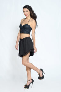Short, feminine, cinching beauty in comfy cotton fabric for the beach holidays. Flexible underwire design for better bust support. A Halter neckline and crisscross tie-up at the back give a flattering silhouette. Deep heart neckline with a cosy feeling fabric for the best ever corset experience