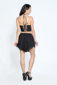 Short, feminine, cinching beauty in comfy cotton fabric for the beach holidays. Flexible underwire design for better bust support. A Halter neckline and crisscross tie-up at the back give a flattering silhouette. Deep heart neckline with a cosy feeling fabric for the best ever corset experience.