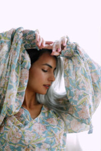 True to the Indian aesthetic, 100% cotton block printed top. A v- neckline paired with big balloon sleeves for a bohemian vibe. Trendy Pastel hues with statement-making patterns. A two-metre-long belt at the waistline with smocking at the back, for an effortless fit. This versatile top pairs beautifully with denim, parallel pants, or skirts.
